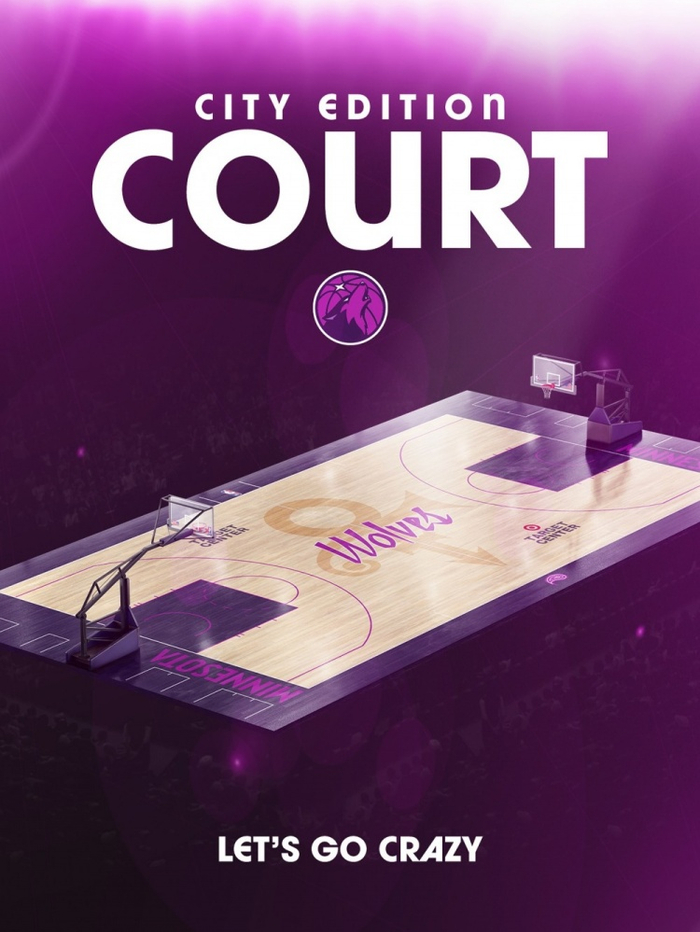 直播吧10月21日讯 森林狼官方社媒发布了球队新赛季的城市版球衣和对应的同主题地板涂装。