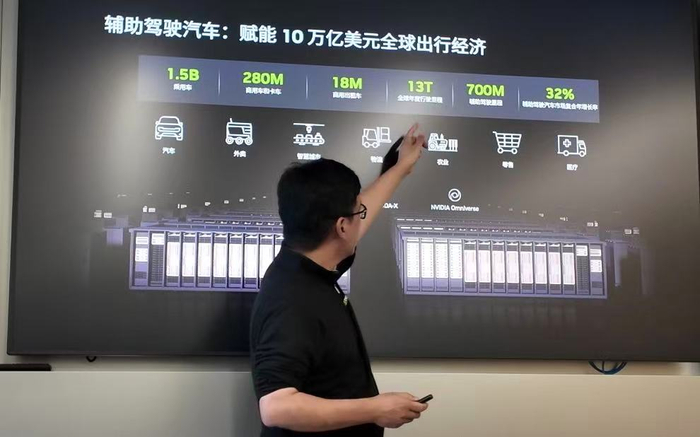 北京国际车展前,在英伟达北京的一间会议室里,英伟达全球副总裁吴新宙指向PPT中那个被他称为“最重要”的数字——13 T(trillion)。